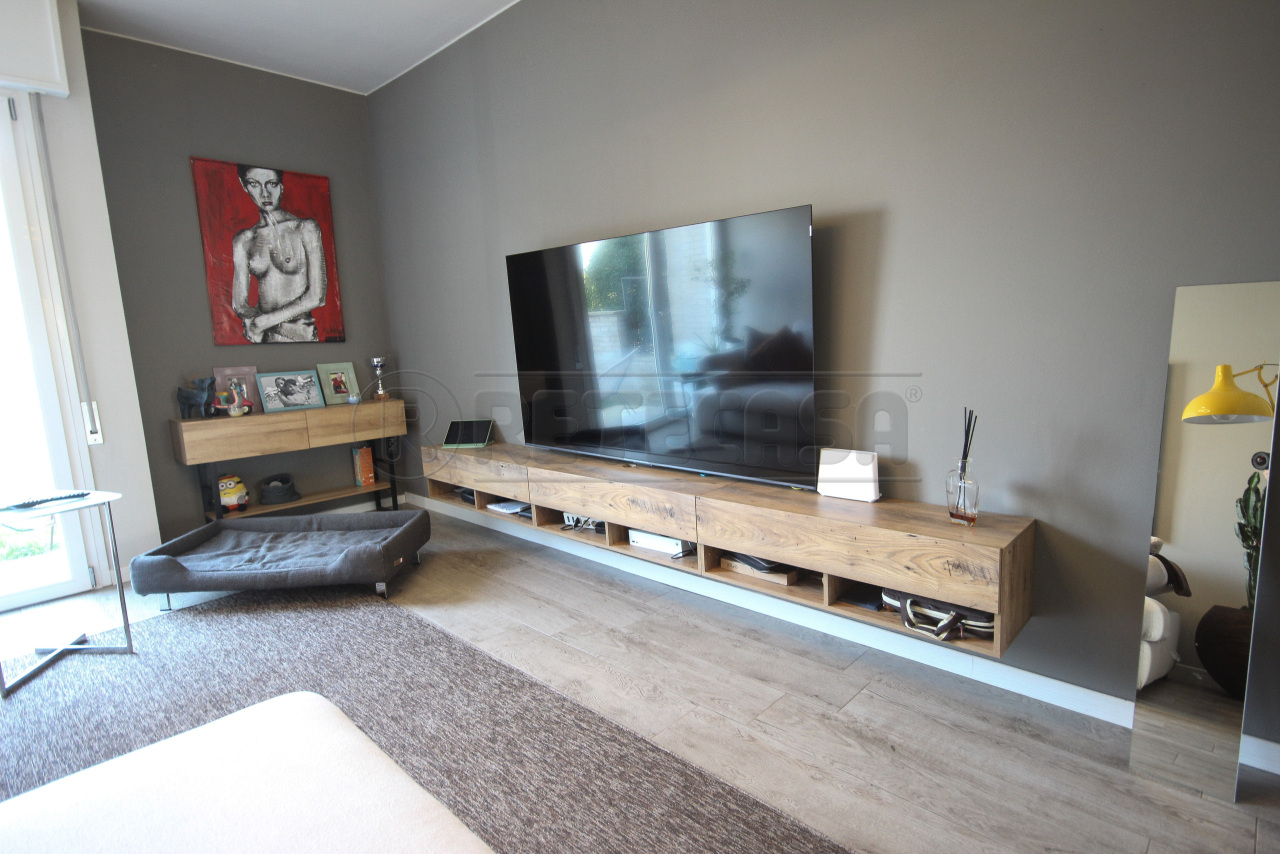 Varcando la soglia ci accoglie un’atmosfera moderna e funzionale, l’ampia zona giorno open-space, sapientemente organizzata, ha due zone ben definite mantenedo comunque la continuità visiva. Completa il piano terra un bagno, e l’accesso diretto alla zona living esterna.
