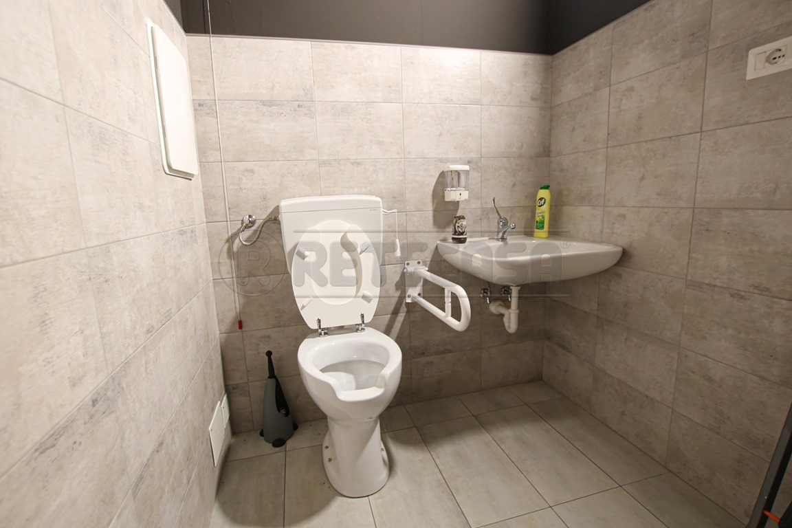 – mobile metallico verniciato portadesivi, wc disabili completo, 2 maniglie per sostegno;